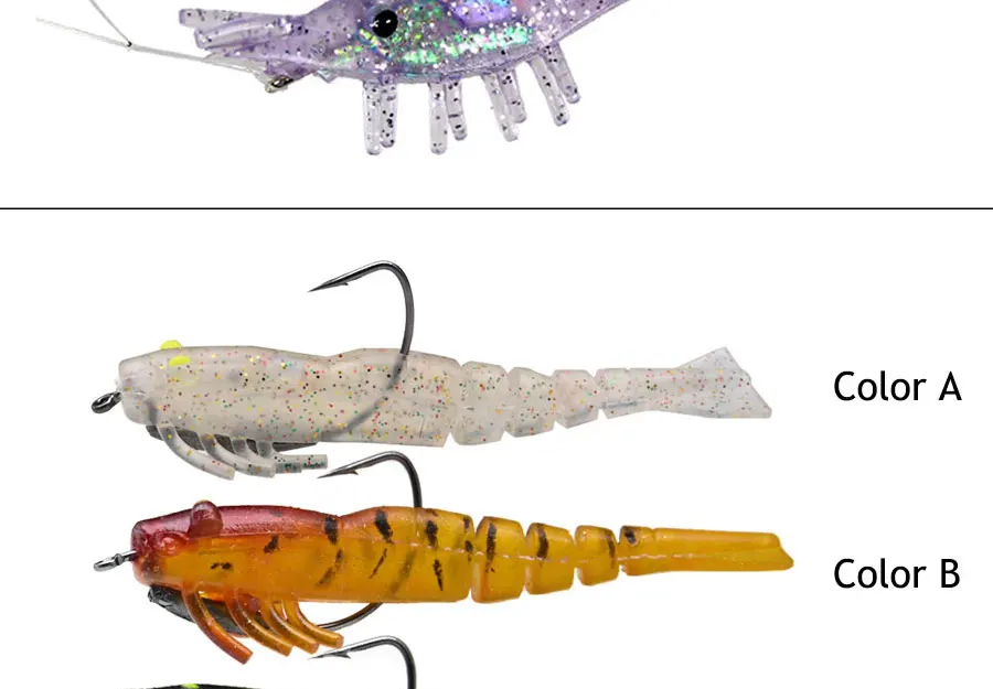 JYJ 5cm 7cm 9cm todo tipo de tamaños plástico de silicona suave pesca camarones señuelo de gambas cebo para wobblers pesca isca