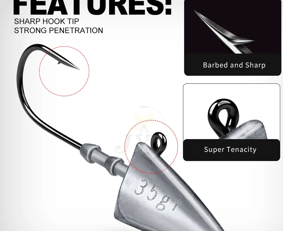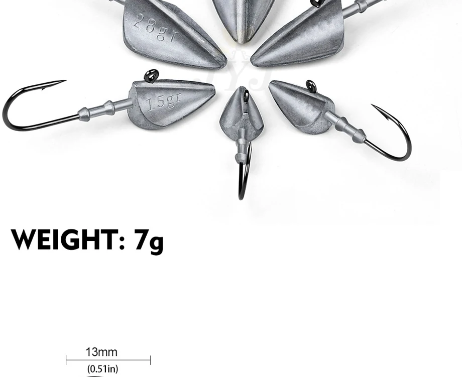 Anzuelos de cabeza triangular, 7g, 10g, 15g, 21g, 28g, 35g, tipo barco, anzuelo de pesca, gusano suave, anzuelo de señuelo, cabeza de plantilla, ganchos de aparejos de pesca