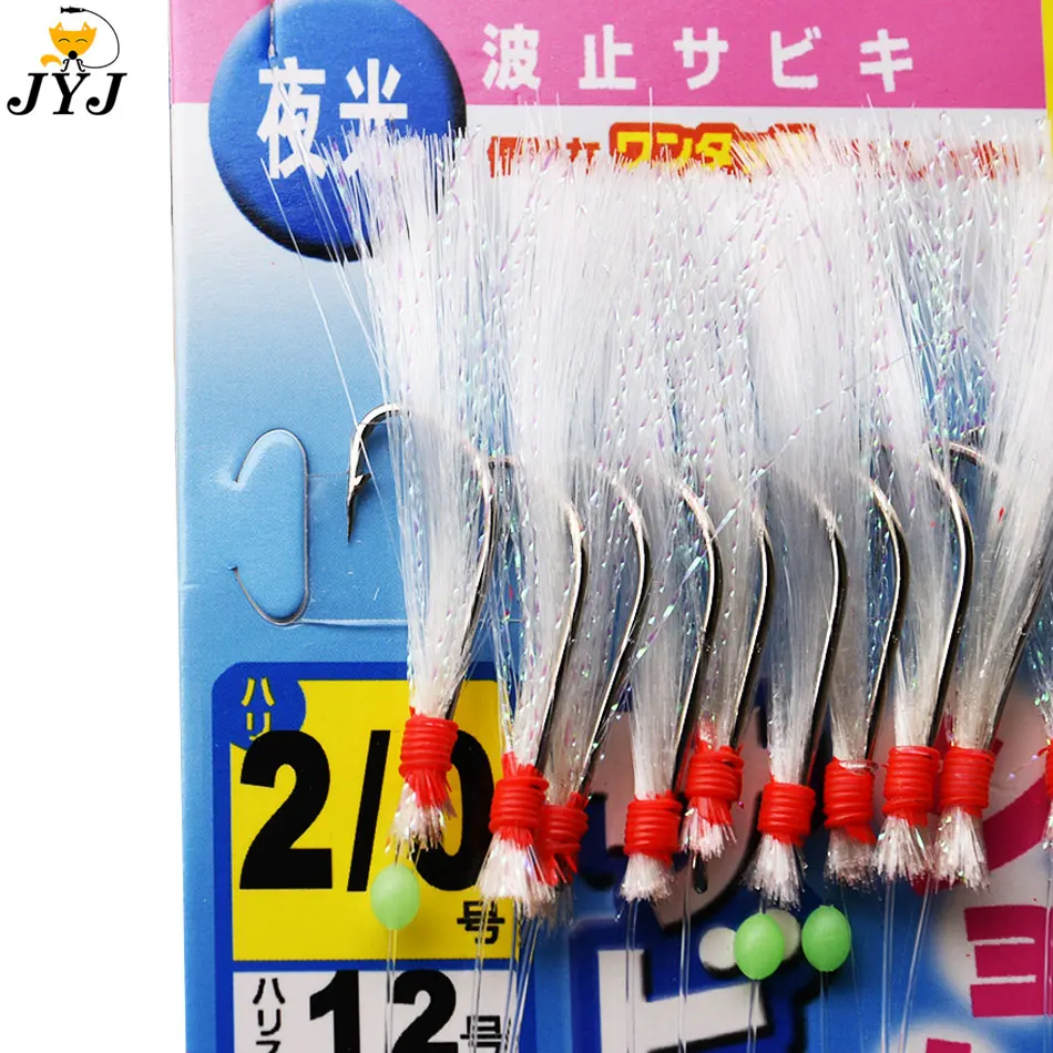 JYJ-aparejo Sabiki de 10 ganchos para caballa, sardina, arenque de ojo rojo, maasbanquero y Sábalo, anzuelo de señuelo vertical sabiki de aguas profundas