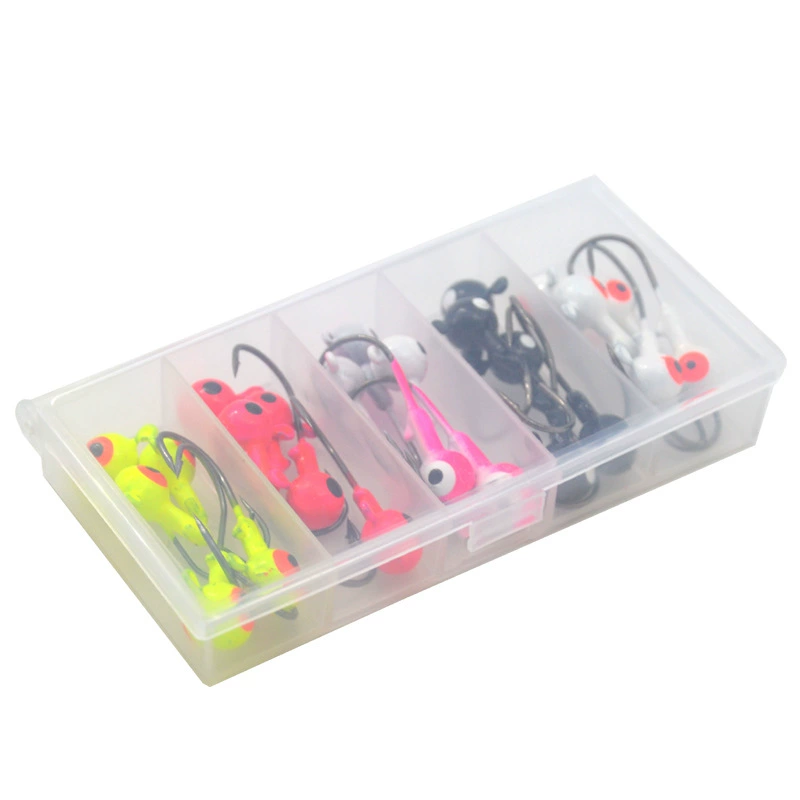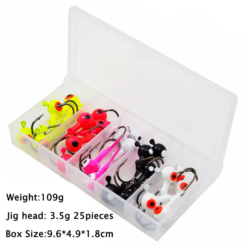 JYJ-caja de anzuelos de 3,5g, 5g, 6g, 7g, 8g, cabeza de plantilla para señuelo de pesca, juego de caja de señuelos con ganchos de colores para gusanos blandos de sílice grub
