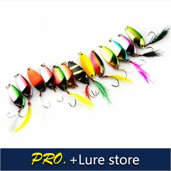 20 piezas 3,4g 4,5g salón, bajo, asesino de lucios cuchara de Metal pesca conjunto de señuelo de pesca con cuchara giratoria cebo