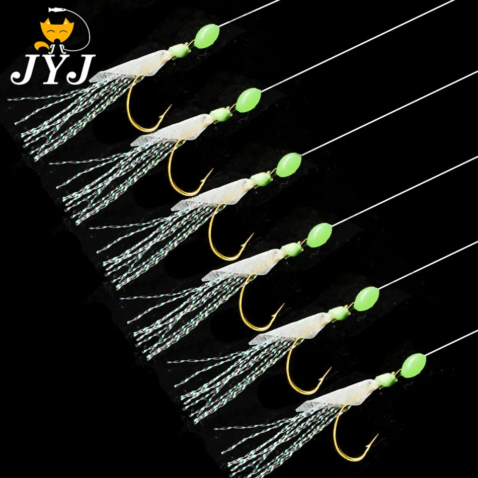 JYJ-juego de aparejos sabaki de pez real, señuelo láser luminoso, cola sabiki, gancho de cuerda, Pesca isca, 6 unids/lote por paquete