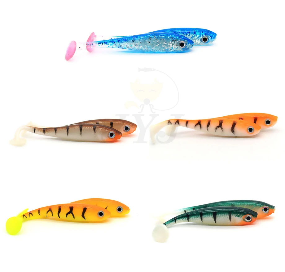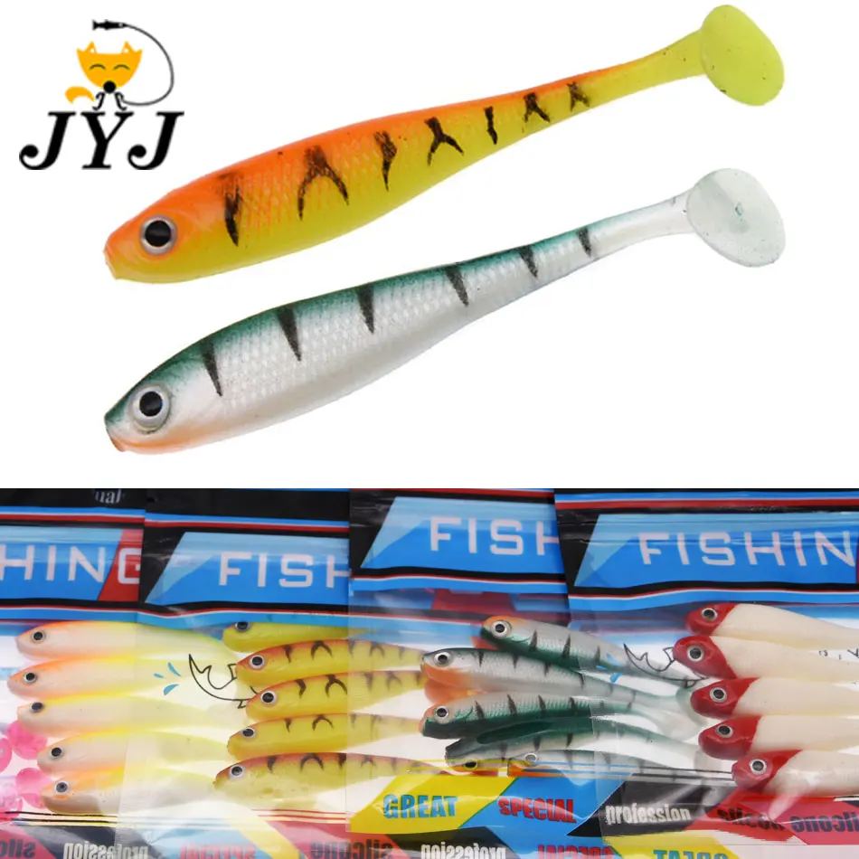 JYJ-señuelo biónico de pesca, cebo blando de cola en T, capa de agua completa, 10 piezas, 7cm, 2,1g
