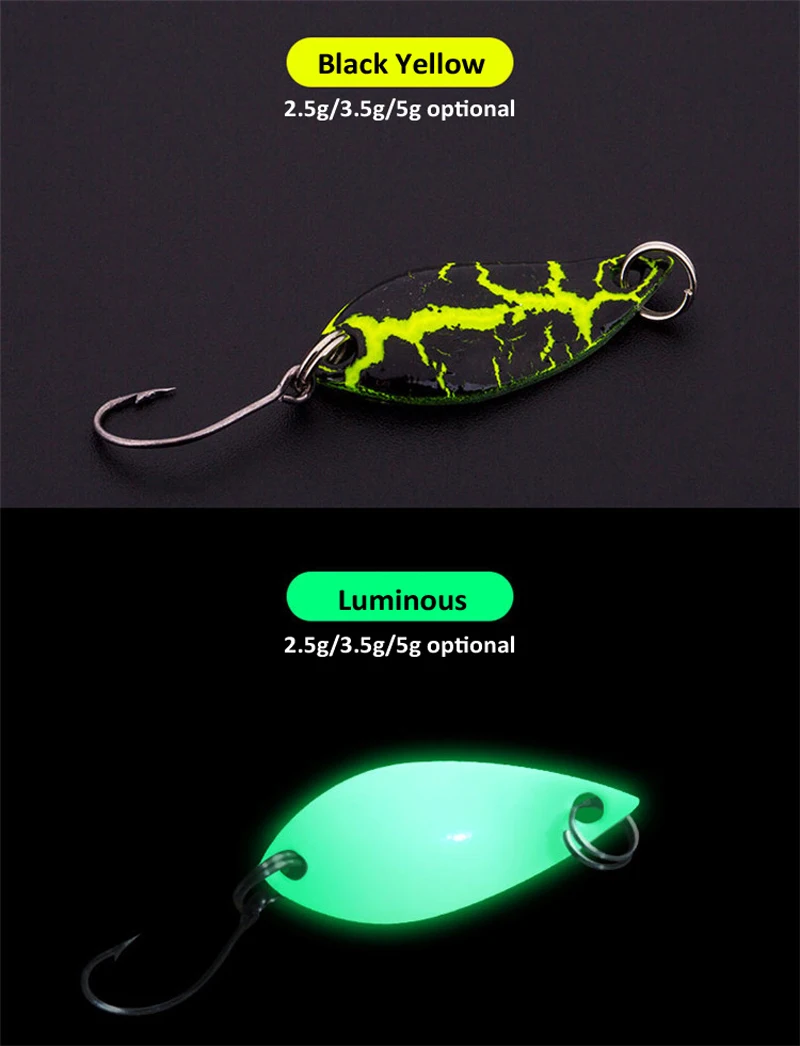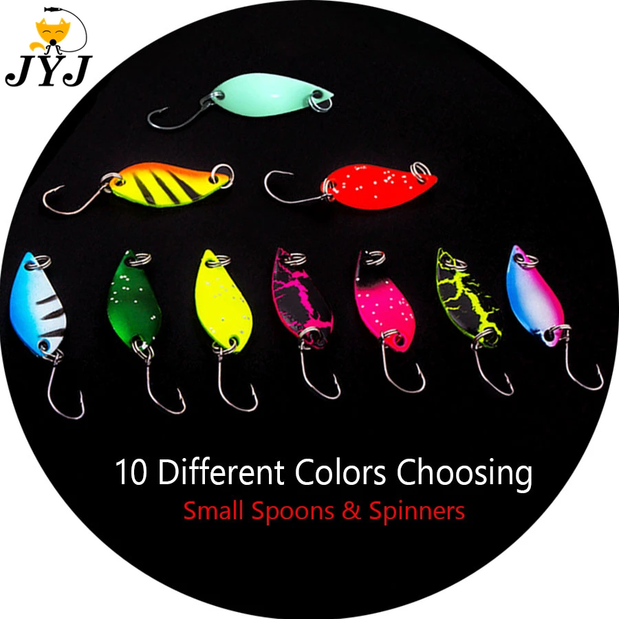 JYJ 2,5G 3,5G 5g cuchara de Pesca señuelo lentejuelas cebo de natación Isca señuelo de trucha Artificial Pesca aparejos de Pesca Leurre Truite cucharas