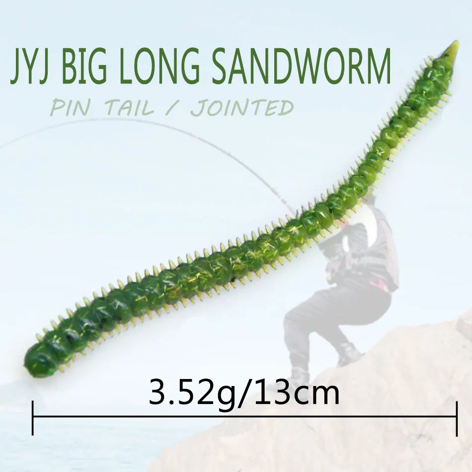 JYJ 13cm 3,6G gusano señuelo largo suave gusano, señuelo de pesca sílice arena gusano cebo para perca grande y lubina