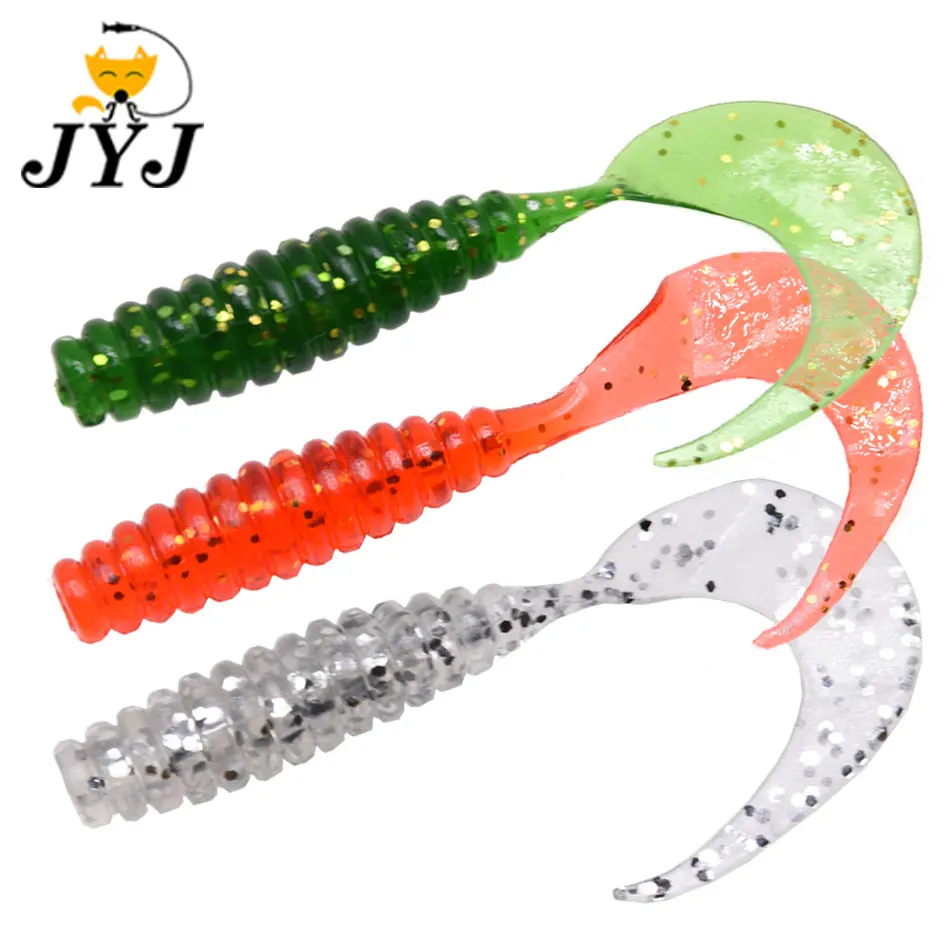 JYJ cebos de gusano de señuelo suave de pesca de 6cm y 60, gusano de sílice suave, gusano de gusano artificial, cebos de tornillo de gusano suave