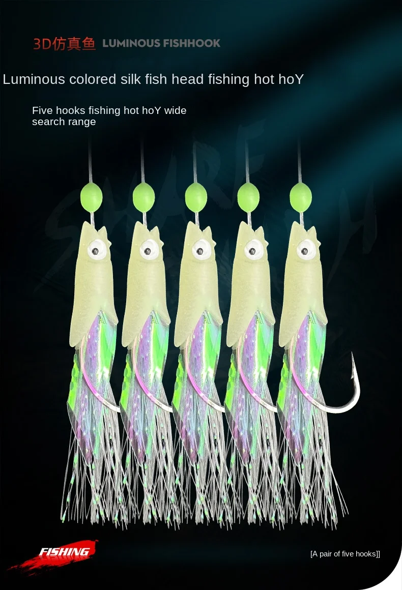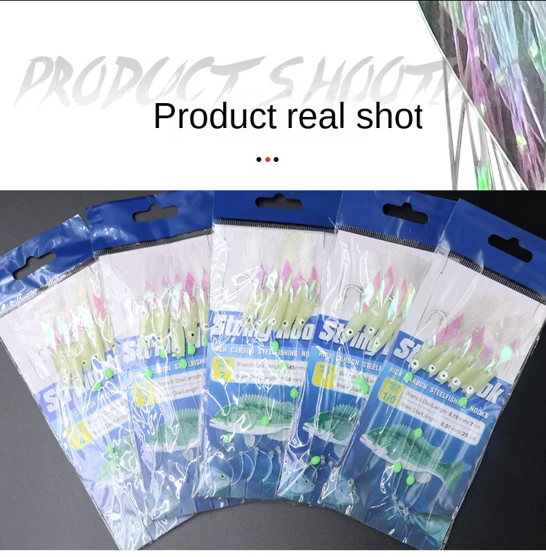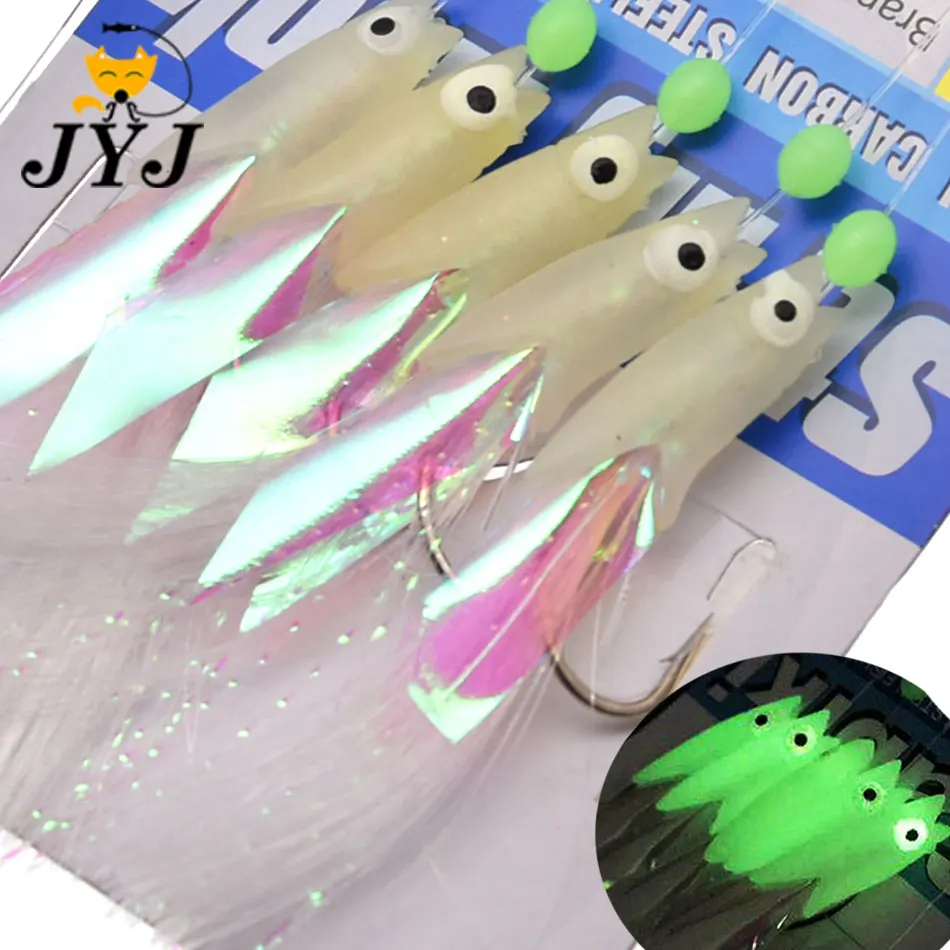 JYJ-señuelo de pesca de agua dulce y salada, anzuelos de cuerda luminosa con Flash de piel de pez simulado, aparejos de cebo