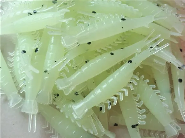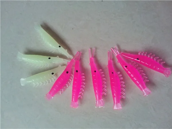 Envío gratis 100pcsX 4,0 cm señuelos de camarón de pesca artificial suave pequeño cebo de camarón suave cebo de camarón luminoso