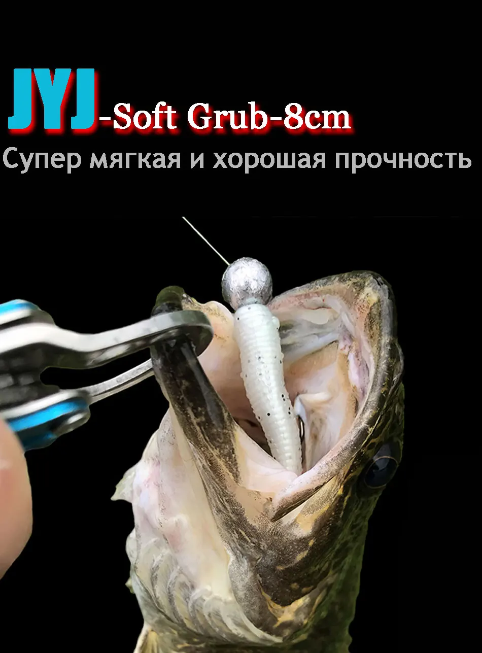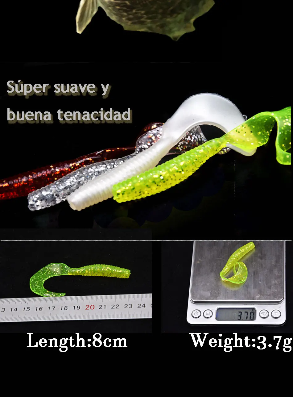 JYJ-señuelo de pesca suave, cebo de gusano, 80mm, 3,7g, aparejos de pesca de silicona suave artificial, 10 Uds.
