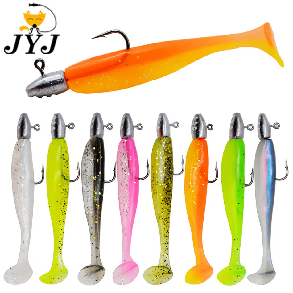 JYJ-señuelo de pesca suave Ttail de 5cm, anzuelo de cabeza plomada de 2g para enraizamiento, 5 piezas por bolsa