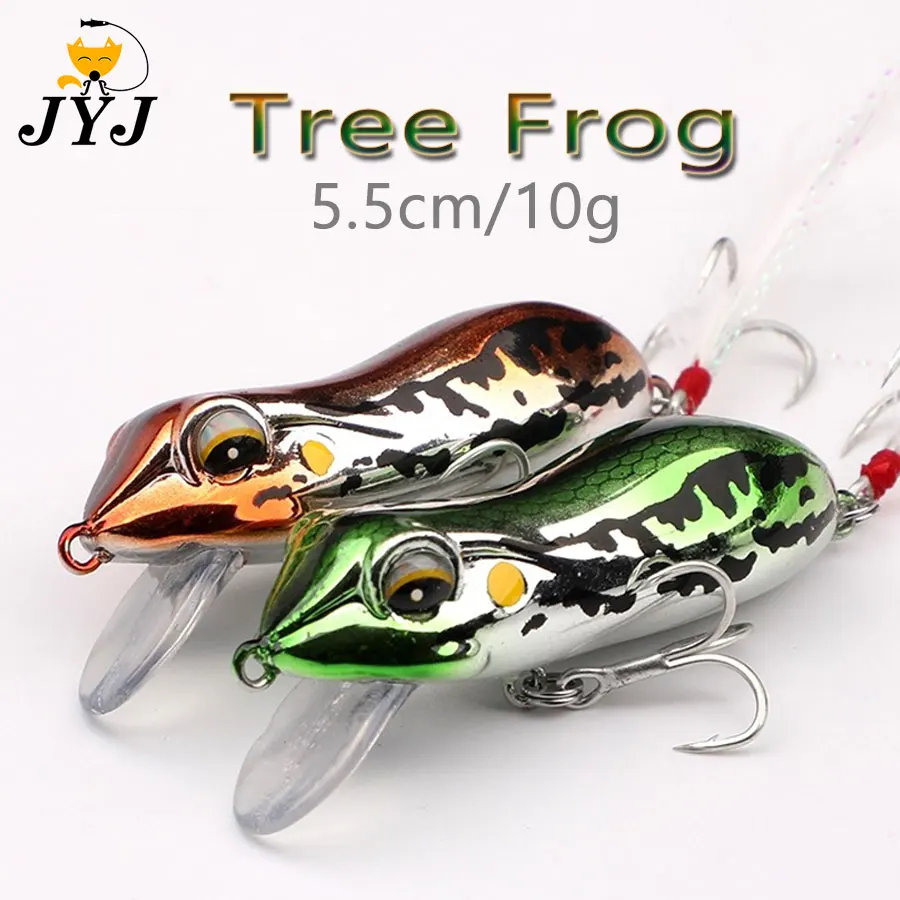 Descripción:JYJ 5,5 cm 10g superficie árbol Rana señuelo cebo, crankbait artificial señuelo flotante para bajo cabeza de serpiente crappie trucha y pez soleado