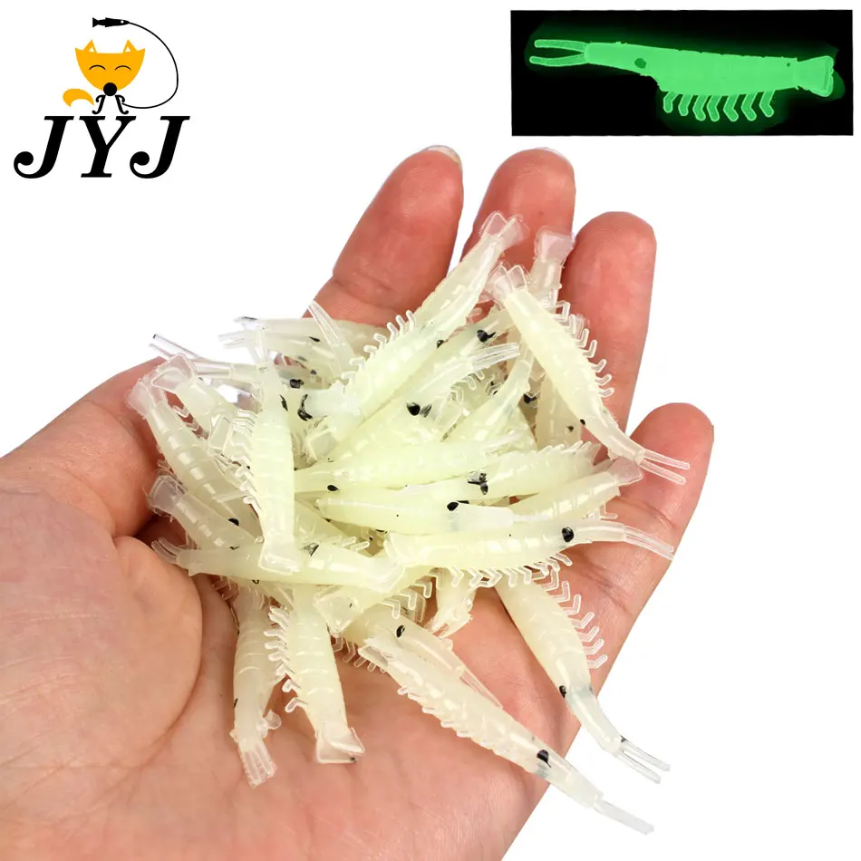 JYJ 100 Uds. Mini señuelo luminoso de plástico suave de 4cm para camarones pequeños, aparejos de pesca de camarones suaves y suaves