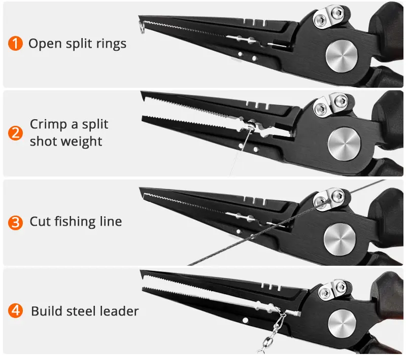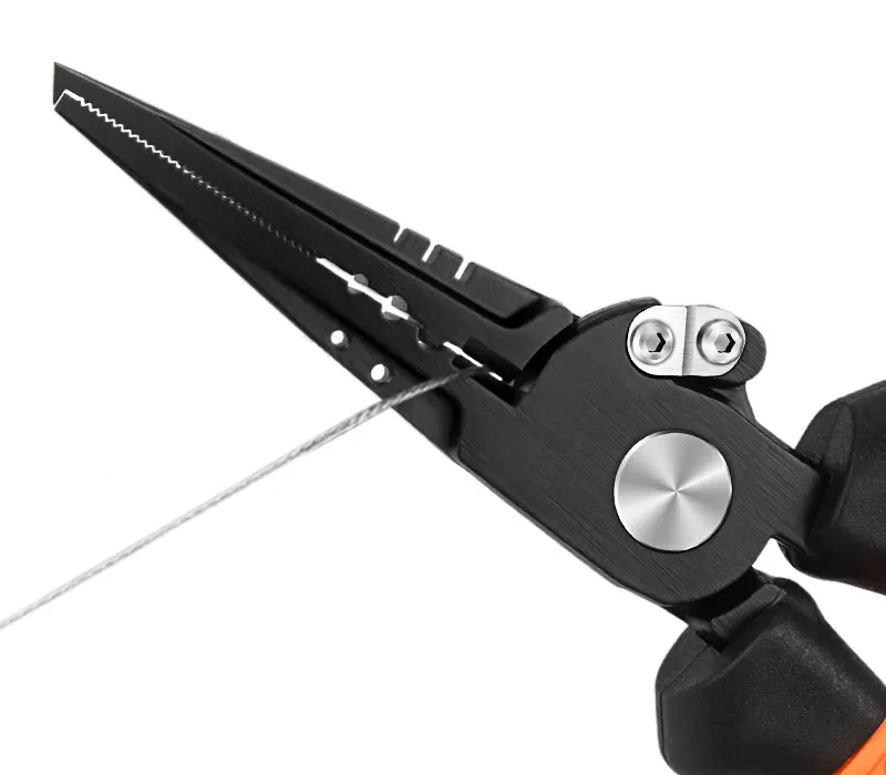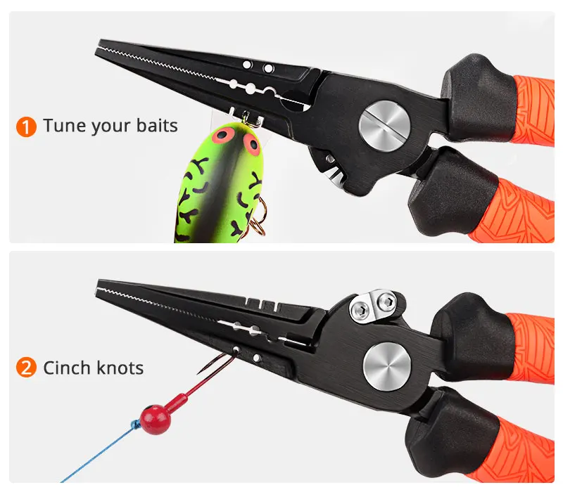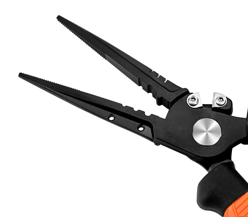 Características:1¡! La construcción de acero inoxidable 420 con revestimiento de teflón ofrece resistencia a la corrosión y rendimiento a largo plazo.2. Cortadores de carburo de tungsteno superafilados que cortan líneas de mono, trenza y fluorocarbono con facilidad.3. Las mandíbulas dentadas sujetan los ganchos con facilidad y los orificios de cincha integrados te permiten enganchar con seguridad en un gancho para encintar un nudo. Las ranuras de engaste integradas son ideales para asegurar pesos de tiro divididos o mangas de plomo prensadas. Las ranuras de ajuste de cebo integradas garantizan que tus cebos funcionan rectos y auténticos.4. El mango de súper polímero ofrece un agarre cómodo y seguro y no se deslizará de tu mano.5. Nuestra envoltura de eva moldeada personalizada con cordones protege y asegura sus alicates.