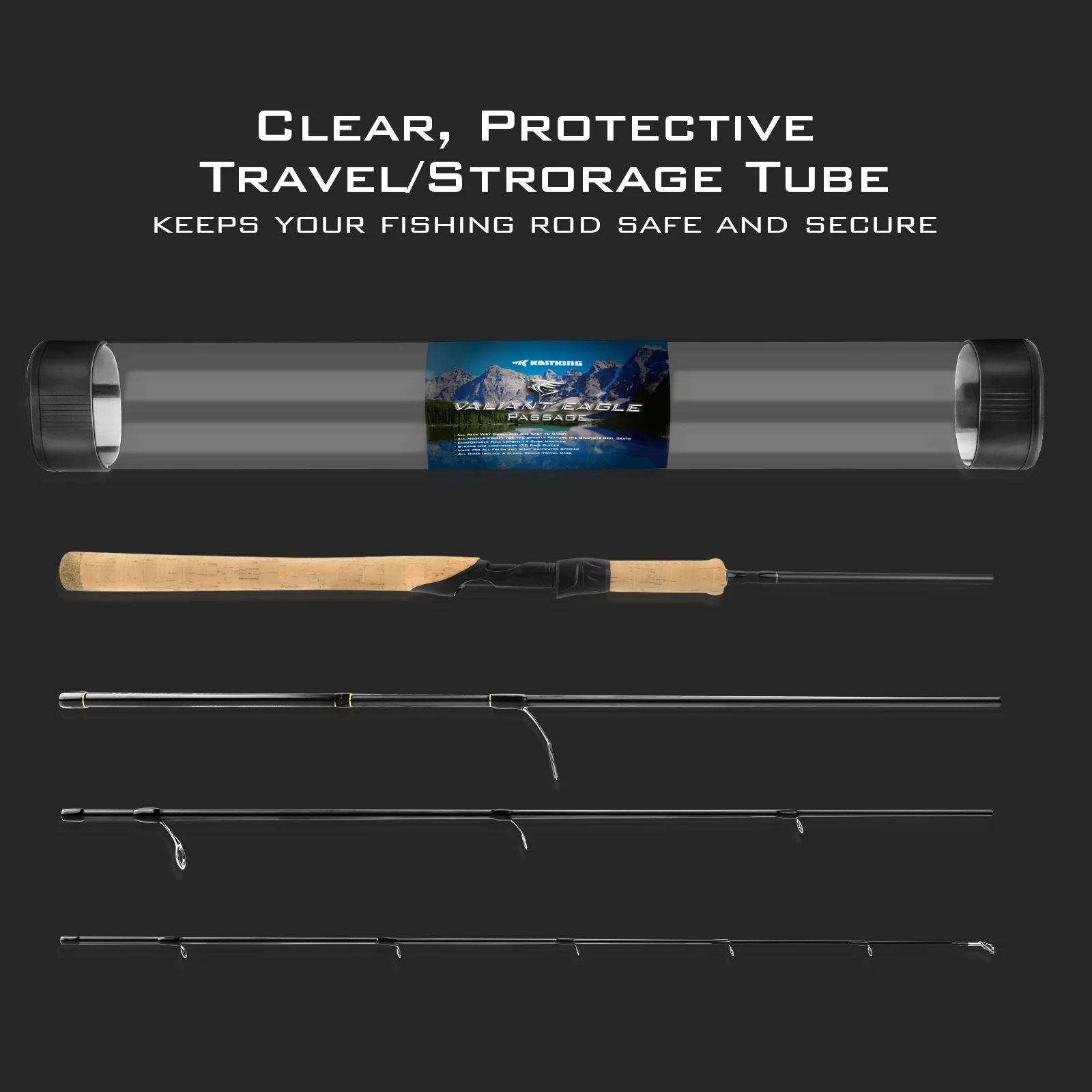 【 4 y 6 varillas de viaje/paquete】-¡Las nuevas cañas de viaje KastKing Valiant Eagle Passage están hechas para ir a lugares! Disponible en modelos spinning, casting, Fly y spin/fly de 4 a 6 piezas. Esta serie de cañas de rendimiento, viaje/paquete está lista para ir a cualquier lugar que la aventura te lleve. Desde una varilla de potencia de 5 '6 "Medium Light para empacar en lagos de alta montaña hasta una varilla de potencia pesada de 8' 6" que puede llevar a Alaska. Incluso hay una 6 piezas, 8'6 "5 WT. Caña de mosca que se comprimirá a solo 19 "de largo. La aventura te espera.