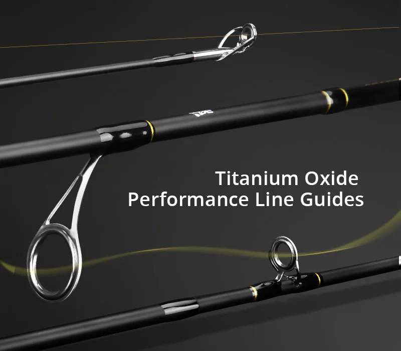【Guías de línea de rendimiento de óxido de titanio】-El titanio es fuerte y resistente y cuando se utiliza para crear anillos guía, proporciona una durabilidad inigualable. Esto es perfecto para las súper líneas de hoy, que son tan populares entre los pescadores de hoy. LTS, las guías de óxido de titanio no se ranuran bajo la presión de peces potentes y ofrecen distancias de lanzamiento increíbles. Todas las cañas de pescar de viaje/Paquete de Passage incluyen marcos guía de acero inoxidable de primera calidad con anillos de óxido de titanio duraderos para maximizar el rendimiento.