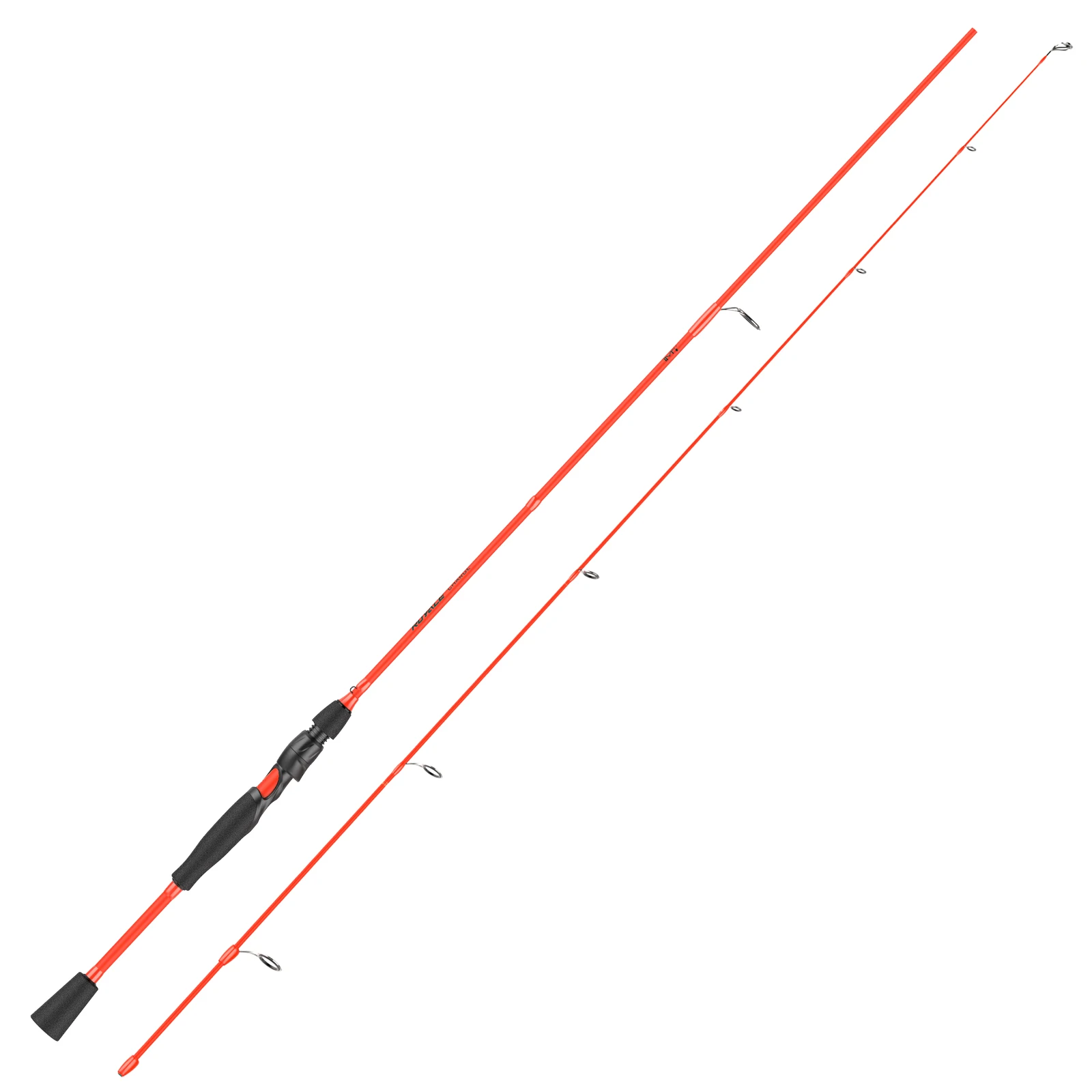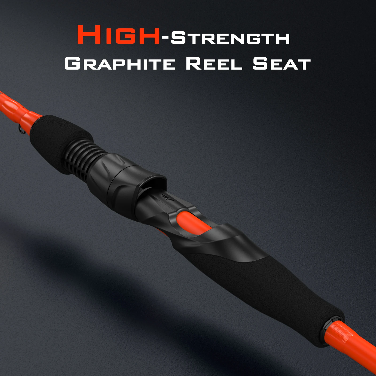 【High Density EVA Handles】 – The thin and light, high-density EVA handles, foregrip and fighting butt complement the graphics and color of the rods and helps reduce overall weight. It’s comfortable in your hand and provides all day performance. Everyone will know you are in “Charge” of your fishing experience when they see the flicker of your fluorescent orange Royal Charge fishing rod.