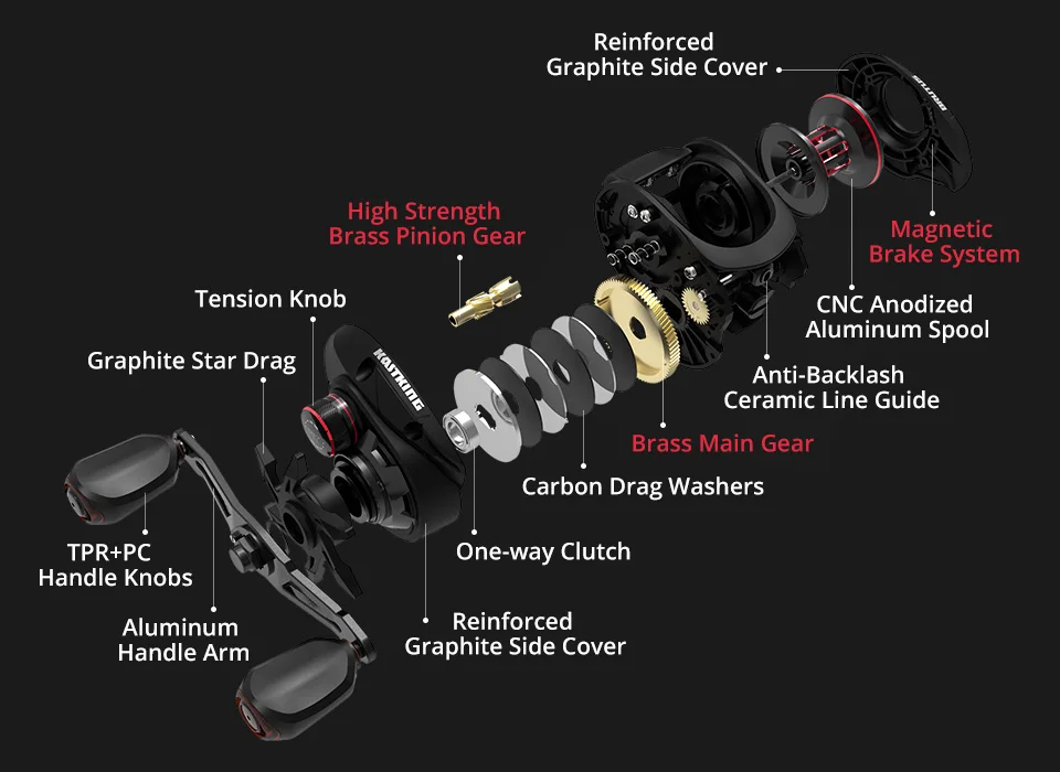Además, Brutus también utiliza rodamientos de bolas de doble blindaje 5 + 1 y una bobina de aluminio CNC, que reduce el ruido y aumenta el rendimiento y la distancia de fundición.