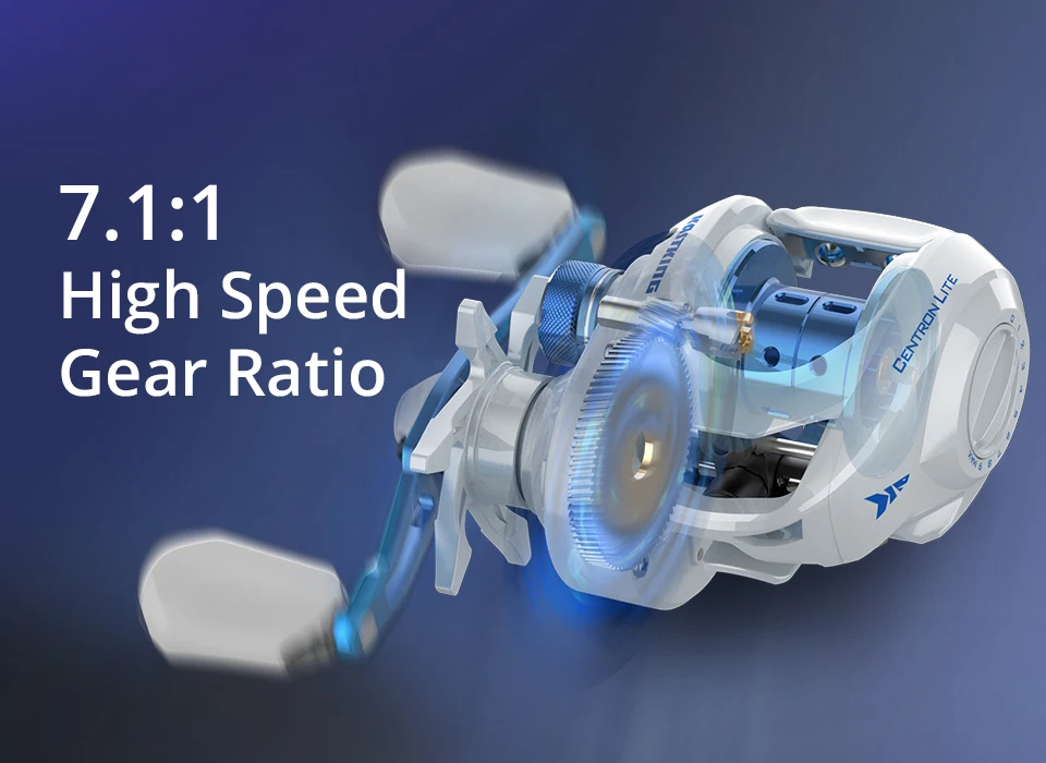 • Relación de engranajes de alta velocidad de 7,1: 1 :La relación de transmisión de alta velocidad de 7,1: 1 permite una recuperación rápida y eficiente de su captura, lo que aumenta sus posibilidades de desembarcar un pez.
