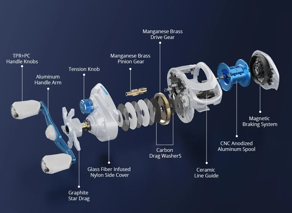 RENDIMIENTO LISTO-5 rodamientos de bolas de acero inoxidable de doble blindaje + 1 rodamiento anti-reverso para un rendimiento suave y confiable. Los engranajes principales y del piñón del latón del manganeso y el sistema de frenos de 10 imanes con el ajuste exterior consiguen el trabajo hecho con esfuerzo mínimo.