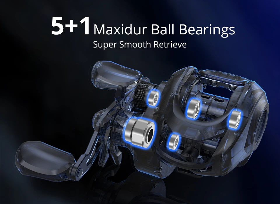 RENDIMIENTO SUAVE-5 rodamientos de bolas de acero inoxidable con doble blindaje + 1 rodamiento anti-retroceso para un rendimiento suave y fiable. Los engranajes principales y de piñón de latón de manganeso y el sistema de frenado de 10 imanes con ajuste exterior hacen el trabajo con el mínimo esfuerzo.