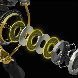 El carrete giratorio Zephyr implementa el nuevo sistema DSSR (varillas estabilizadoras deslizantes dobles) de KastKing. Con 10 rodamientos de bolas de acero inoxidable de doble blindaje MaxiDur + 1 rodamiento anti retroceso instantáneo, esta configuración le brindará un funcionamiento súper suave y una experiencia de pesca de agua dulce o salada sin complicaciones durante todo el día.