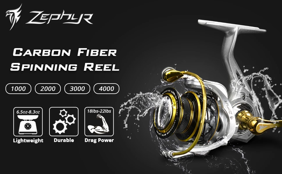 Un carrete de SPINNING POWERHOUSE: KastKing diseñó el carrete de carbono Zephyr con un eje principal de aleación endurecida de gran tamaño, engranajes de piñón de latón de manganeso para mayor durabilidad, arrastre de disco de fibra de carbono 3 que ofrece hasta 22 libras de arrastre suave, y mango de aluminio con agarre EVA para ayudarte a ganar la batalla de pesca con los peces más duros.