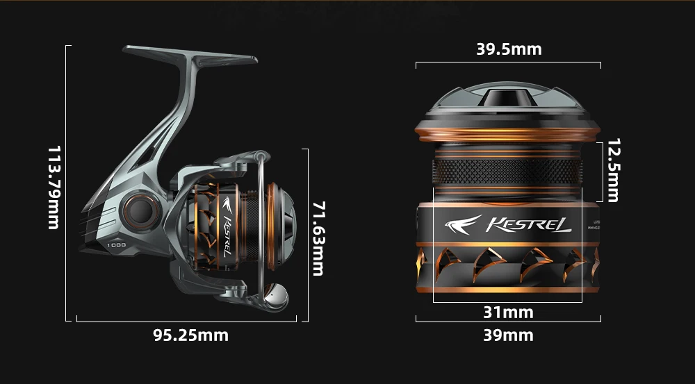 【IDEAL SPINNING REEL PARA FINESSE FISHING】El carrete giratorio Kestrel SFS (Spin Finesse System) es increíblemente ligero, con un peso de solo 4,6 onzas. El marco completo de fibra de carbono junto con el uso máximo de los componentes de aluminio 7075 y 6061 mantienen el peso del carrete al mínimo absoluto.