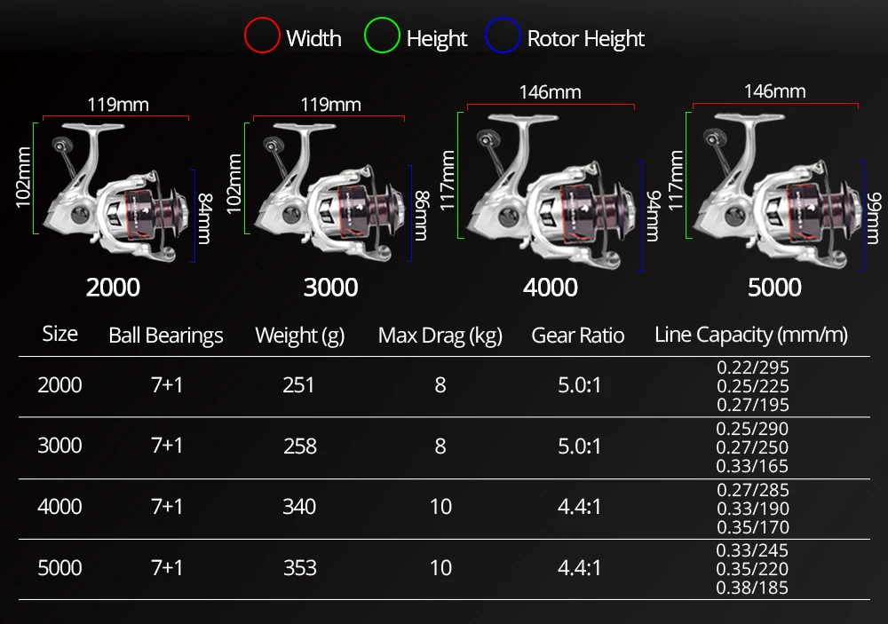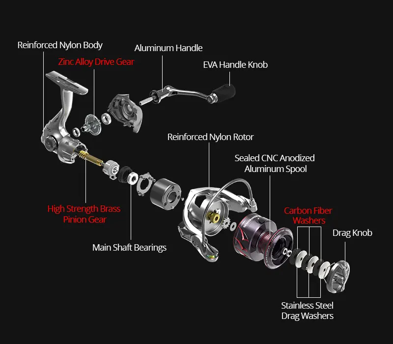 Powerful and Reliable1.CNC Anodized Aluminum Spool2.Reinforced Nylon Rotor3.Reinforced Nylon Body