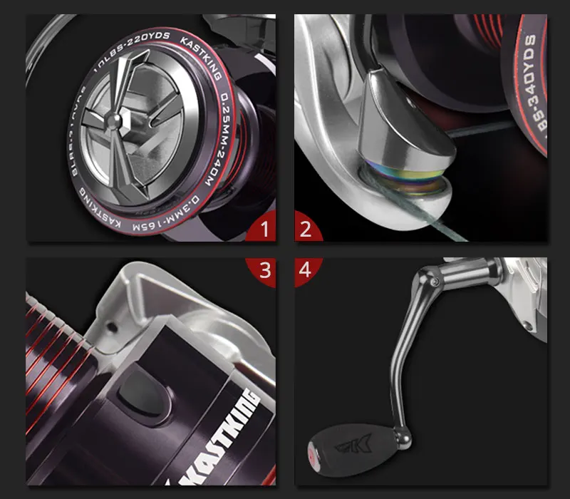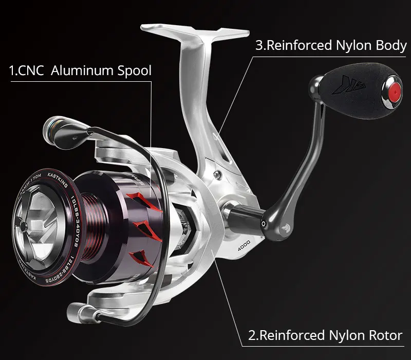 STRONG CONTENDER- Strong metal Hamai cut precision gears, oversized stainless-steel main shaft, CNC aluminum handle and anodized aluminum Spool in the KastKing Spartacus II Spinning Reel give you all day long dependability in your battle with big fish.