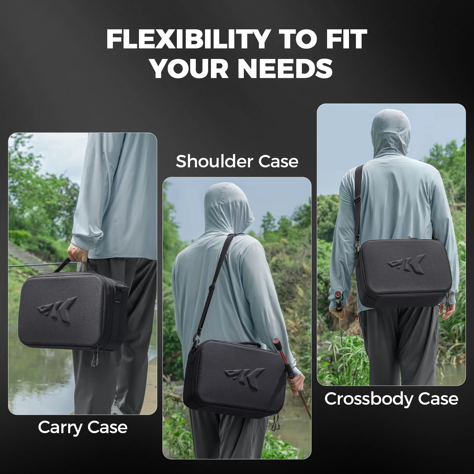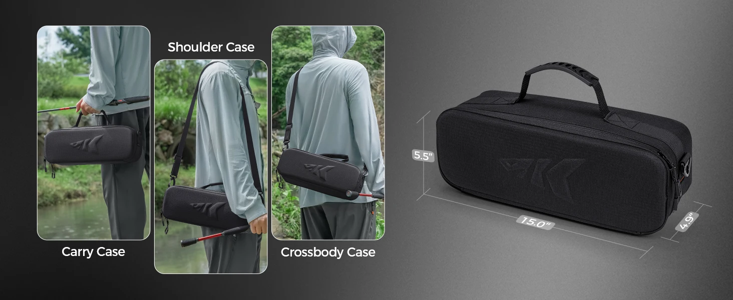 Flexibilidad para adaptarse a sus necesidades: diseñado para una portabilidad versátil, el estuche de carrete de pesca KastKing se puede llevar a mano o usar como estuche de hombro. El mango de goma suave garantiza un agarre lujoso, ofreciendo flexibilidad basada en las preferencias personales y los requisitos prácticos.