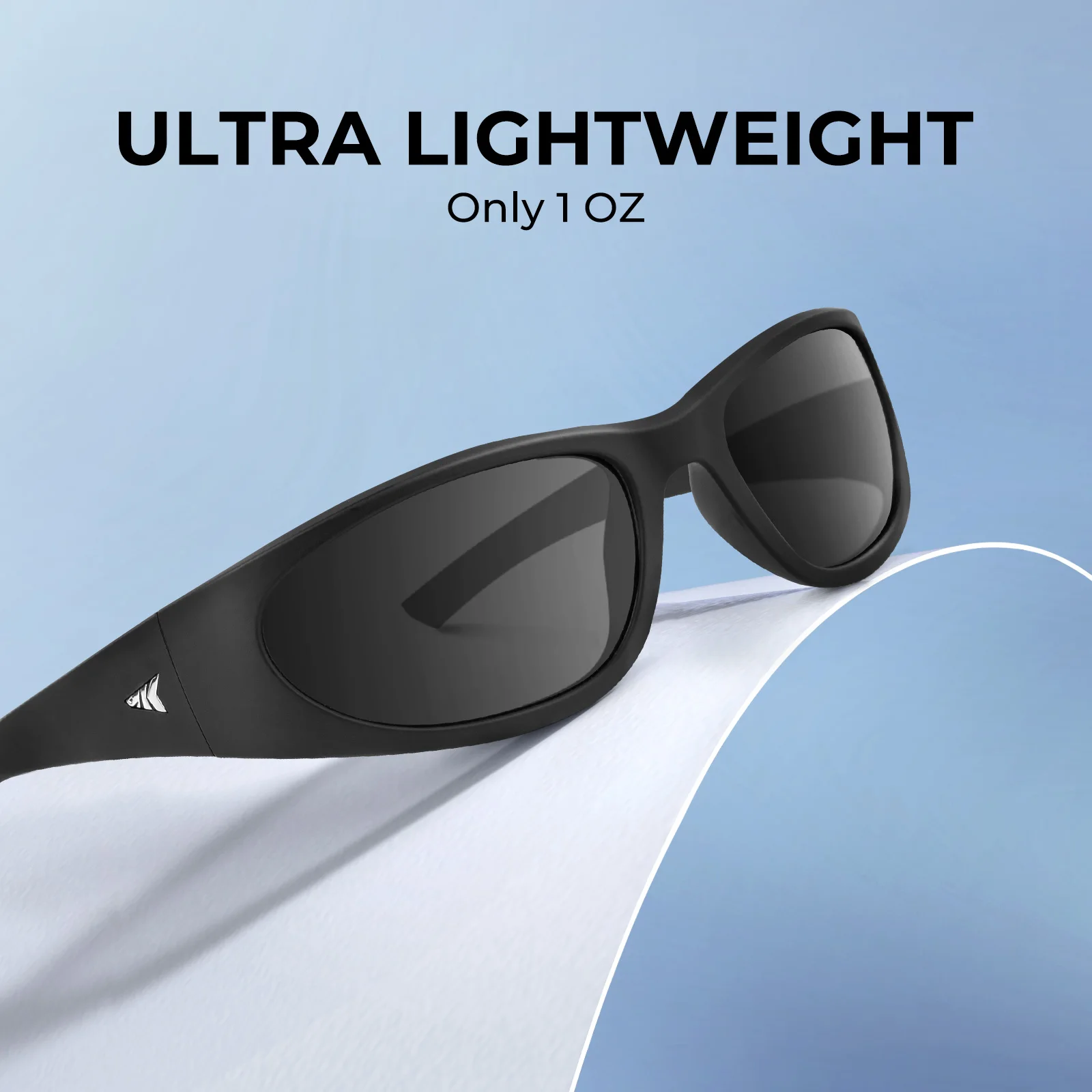 Las gafas de sol deportivas polarizadas KastKing Raccoon están diseñadas con una amplia envoltura de patillas, que bloquea la luz lateral y ofrece la máxima cobertura.Fabricados con el mismo material Grilamid comúnmente utilizado por los militares y en aplicaciones médicas, los marcos son bien conocidos por su resistencia, comodidad liviana, extremadamente flexibles, resistentes al calor y a los rayos UV y a los impactos.Este material ultraligero se traduce en un ajuste muy cómodo.
