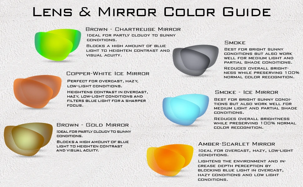 COLOR DE LA LENTE BASE y PROTECCIÓN UV: las lentes de humo son ideales para la luz solar brillante con la reproducción de color más realista y también funcionan bien en luz media y sombra parcial. Las lentes marrones aumentan el contraste y la percepción de profundidad, ideales para condiciones parcialmente nubladas a soleadas. Las lentes de cobre proporcionan un excelente contraste y percepción de profundidad, más adecuadas para luz moderada a baja. Las gafas de sol KastKing bloquean el 100% de los dañinos rayos UVA y UVB y cumplen o superan todos los estándares ANSI de EE. UU.