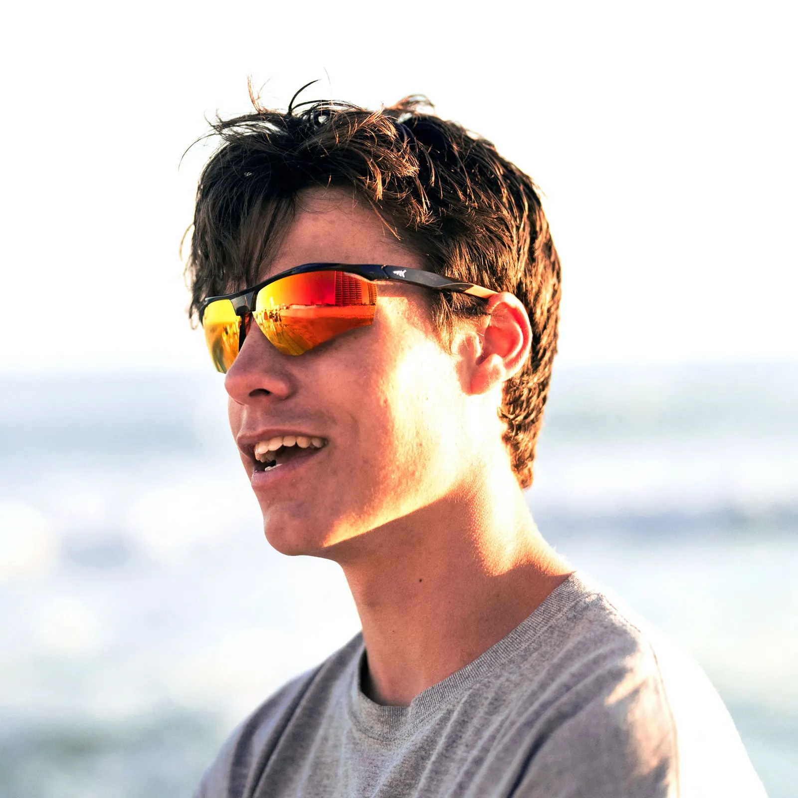 El revestimiento de lentes oleofóbico repele el agua salada, el aceite y los productos químicos - Las lentes polarizadas reducen el deslumbramiento - Las lentes de PC resistentes a impactos protegen sus ojos de objetos voladores - 0.Marcos Grilamid livianos, duraderos y cómodos de 86 oz - Almohadillas para la nariz y las sienes antideslizantes ajustables - Bloquean el 100% de los dañinos rayos UVA y UVB - Diseño agresivo y elegante para actividades al aire libre