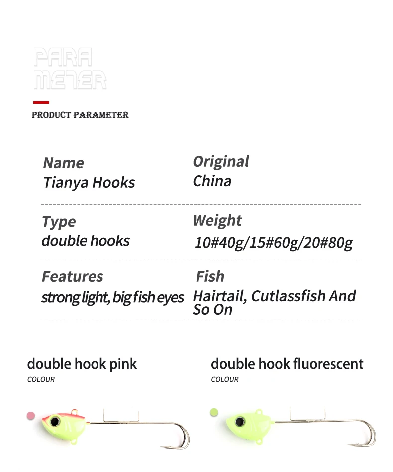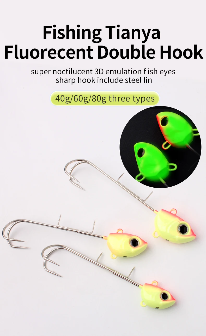 Kawa-anzuelo de pesca Tianya, cabezal de Jigging, 40g/60g/80g, manivela con ojos de pez grande, anzuelos de agua salada para cola de pelo, sepia, 1 ud.