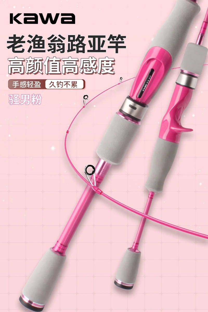 Nueva caña de pescar Kawa UL Action El color rosa más ligero y suave es hermoso portátil para pescar