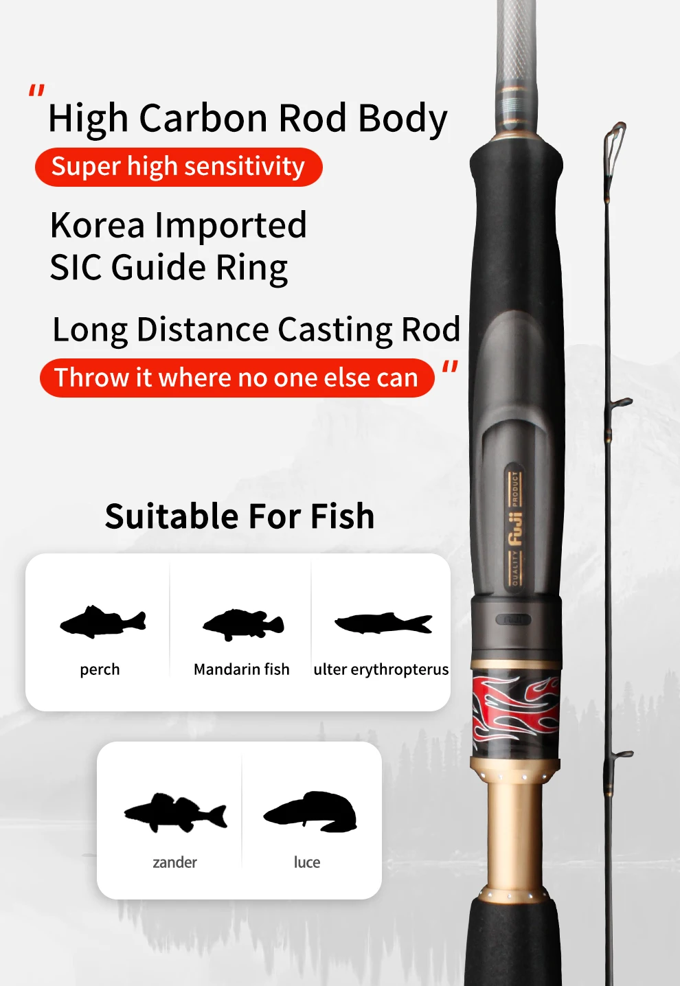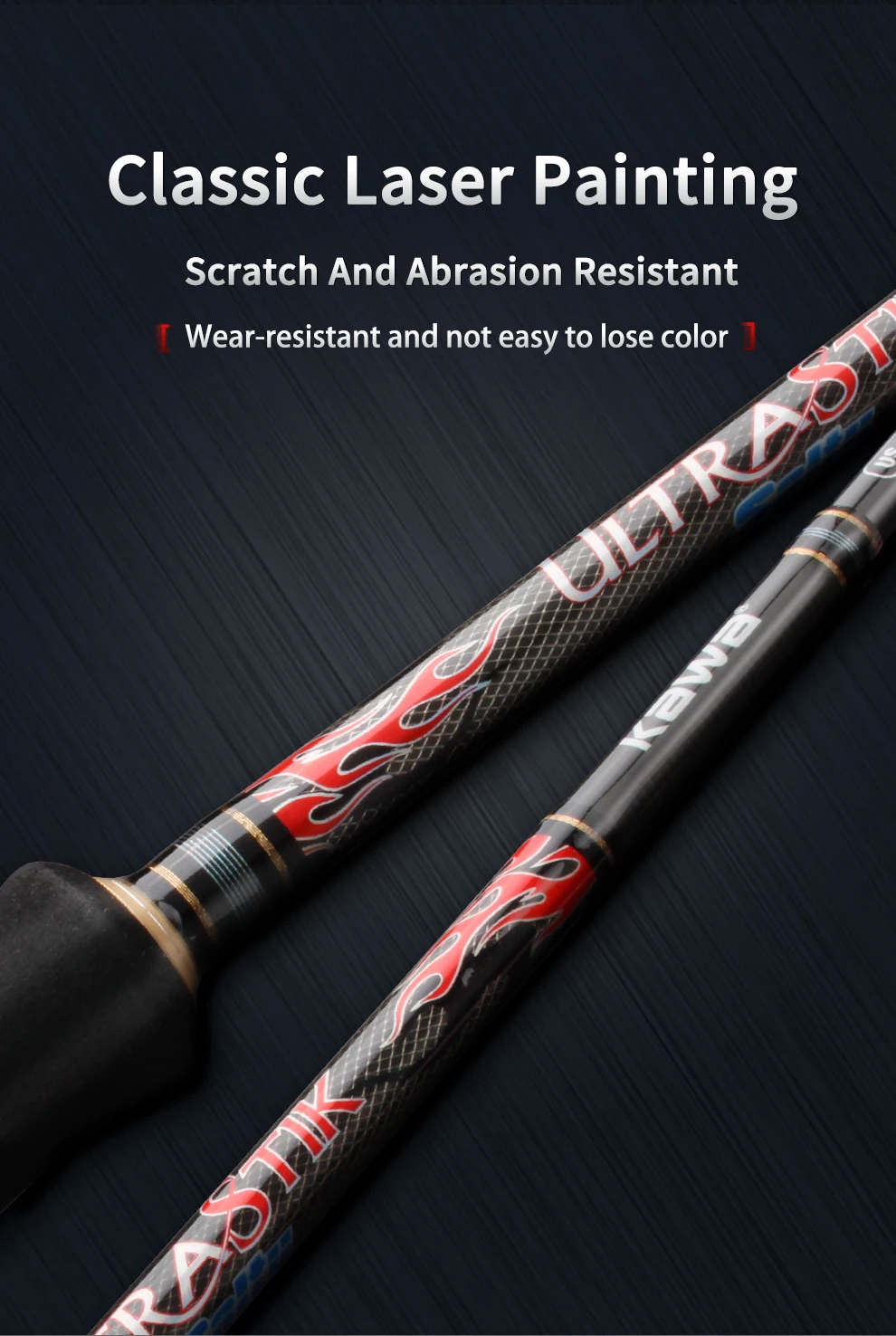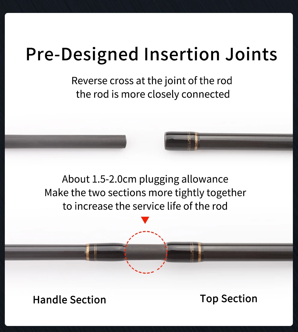 2. Cuerpo de varilla de alto carbono, alta sensibilidad.
