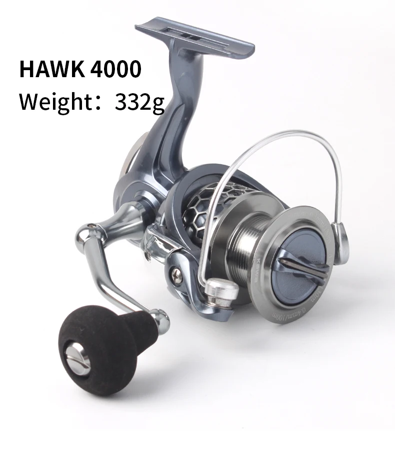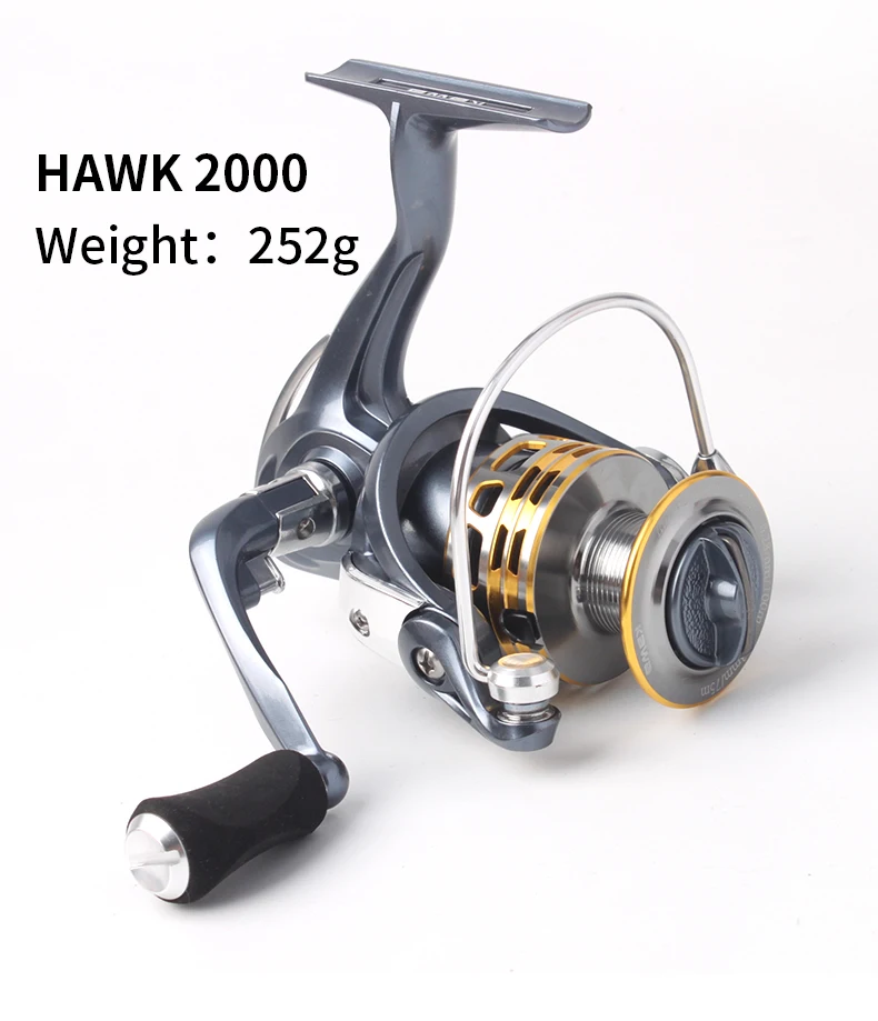 Carrete de pesca giratorio Kawa para relación de promoción 5,2: 1 Hawk Series 9 + 1 rodamientos cuerpo de grafito carrete de Metal perilla EVA precio más bajo