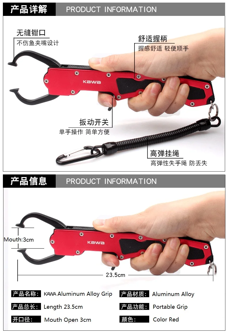 KAWA 2018 nuevo producto agarre de pesca agarre de labio de pez agarre agarre herramienta de aparejos de pesca portátil compacto