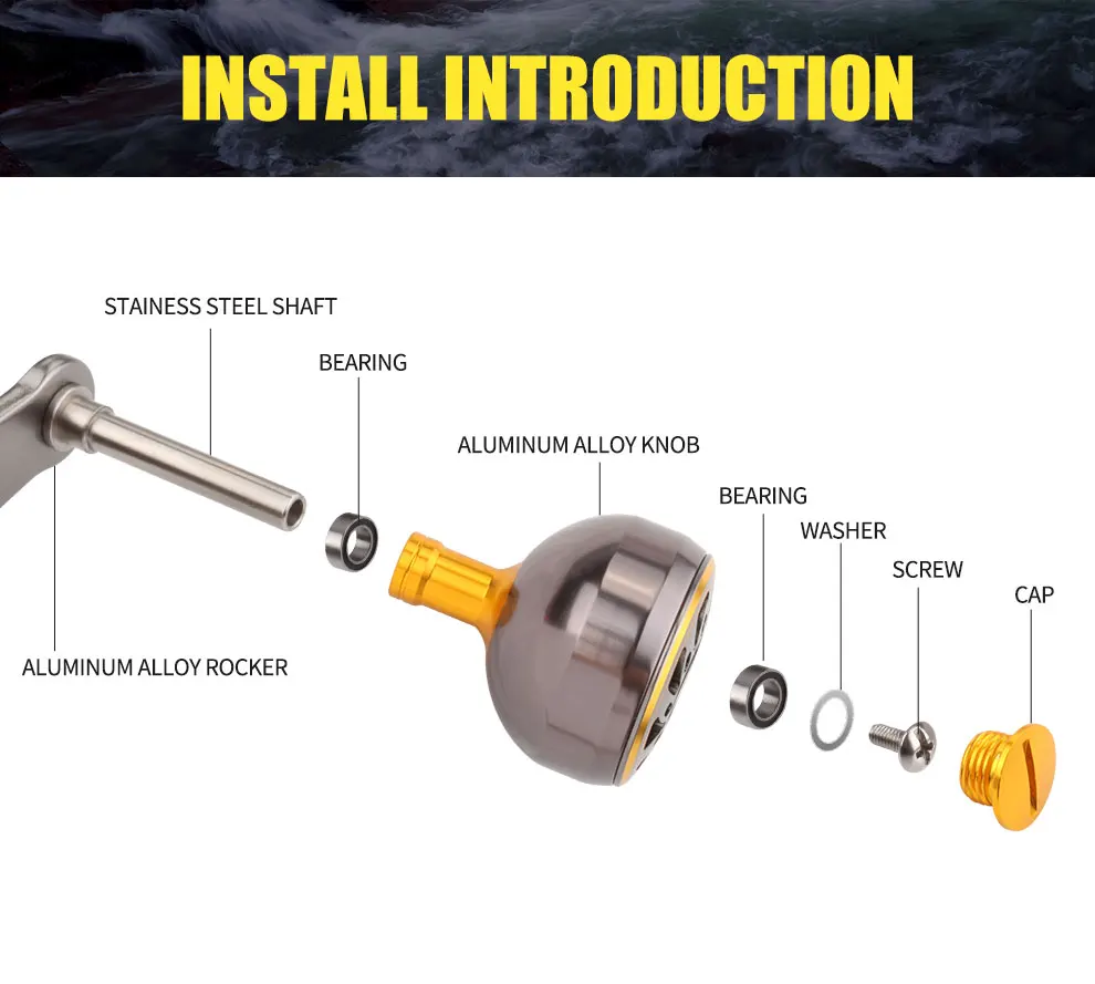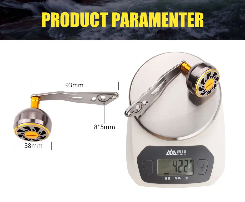 Nuevo mango de carrete de aleación de aluminio Kawa para carrete A y D, accesorio de carrete de pesca, el tamaño del orificio es de 8x5mm, 42G, se puede intercambiar mano izquierda y derecha