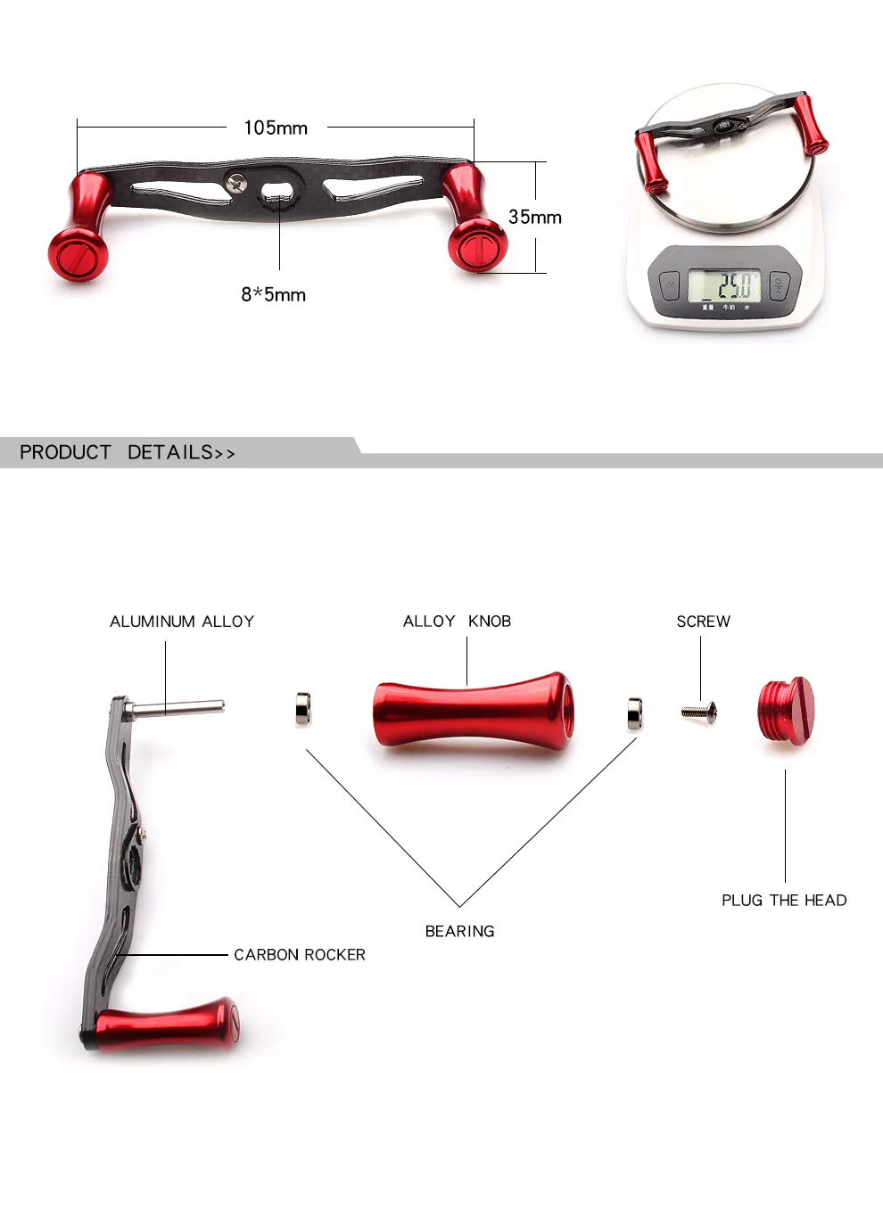 Mango de carrete de pesca de fibra de carbono fuerte de alta calidad KAWA nuevo modelo para Baitcasting, perilla de aleación larga, tamaño del agujero 8*5mm.
