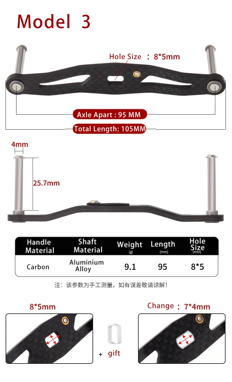 1. Tamaño del agujero: 8x5mm (adecuado para carrete D y A) 7*4mm (adecuado para carrete S)