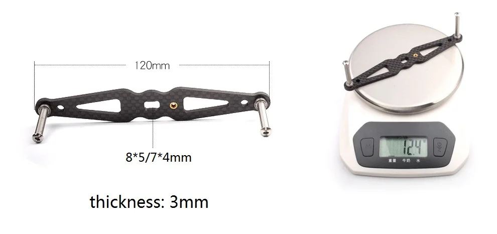 KAWA Nuevo diseño Mango de carrete de pesca, balancín de materiales de carbono de muy alta calidad, accesorio de carrete de pesca, 120 mm de longitud, tamaño del agujero 8X5/7x4 mm