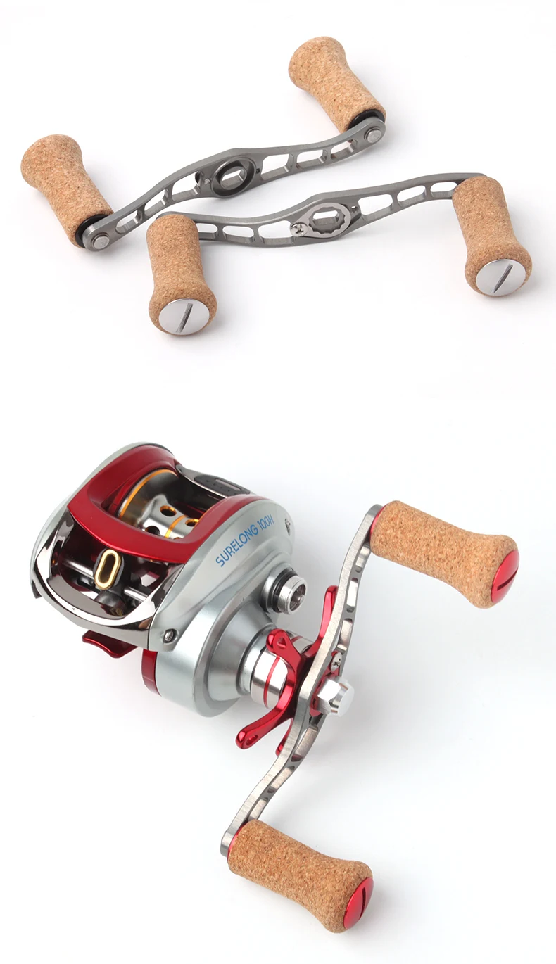 Nuevo mango de carrete fhing de alta calidad, mango de carrete de pesca de Metal fuerte con perilla de corcho para Baitcasting, tamaño del agujero 7*4/8*5mm