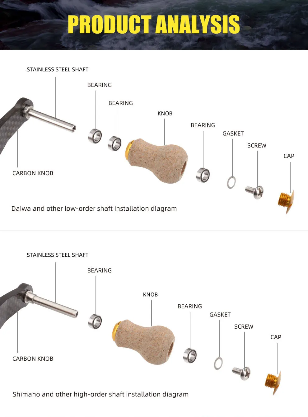 KAWA nueva perilla de mango de carrete de pesca, Material de madera suave con perilla de mango de goma para carrete D/S, accesorio de mango de carrete de pesca DIY, envío gratis