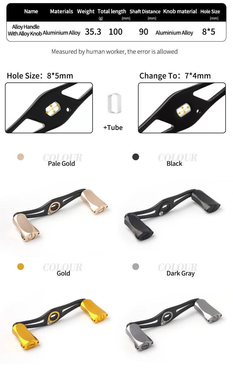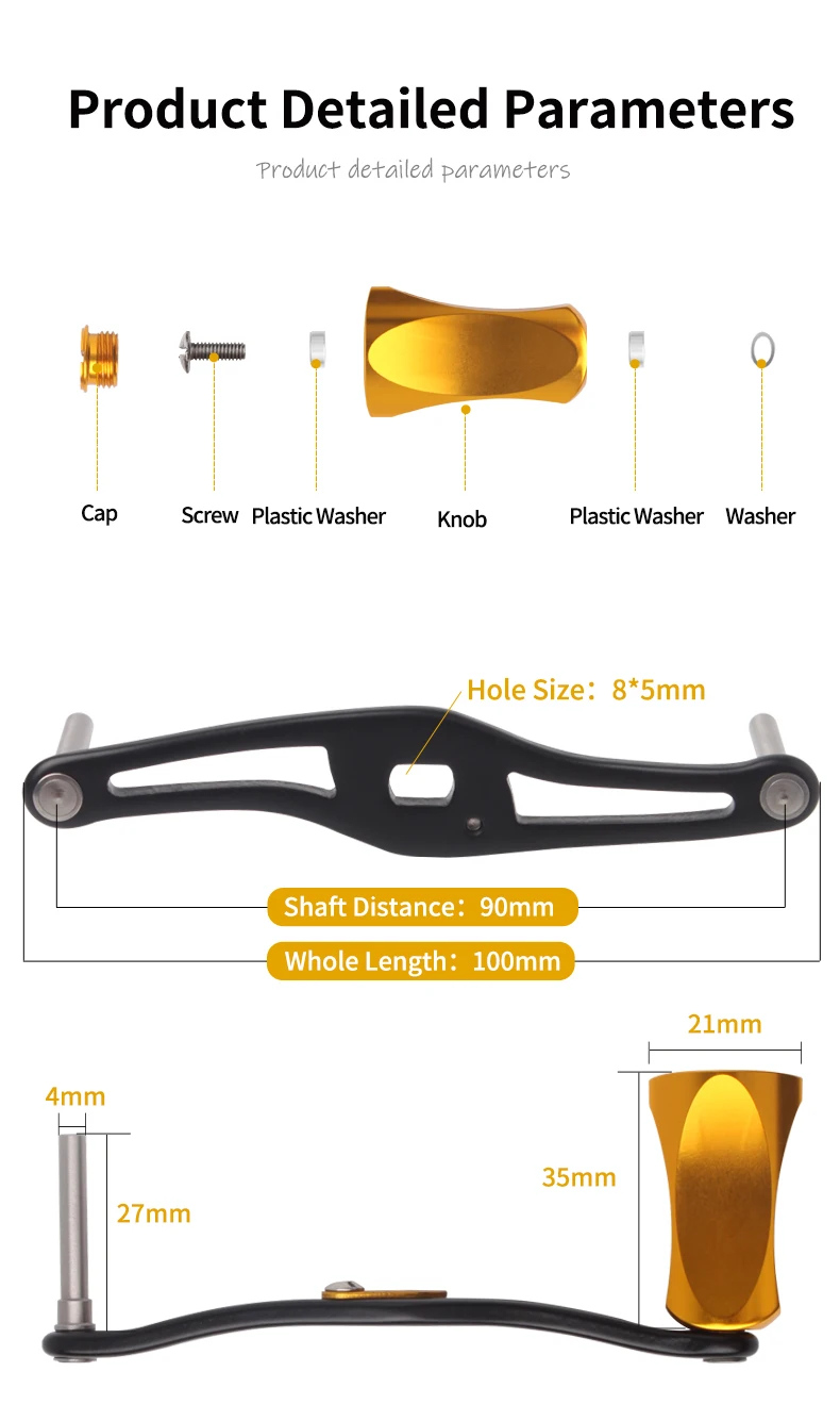 kawa New Fihing Reel Handle High Quality Lower Price Strong Metal Fishing Reel Handle With Alloy Knob For Baitcasting, Hole size 7*4/8*5mm