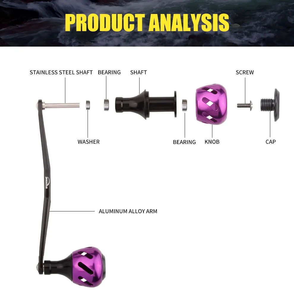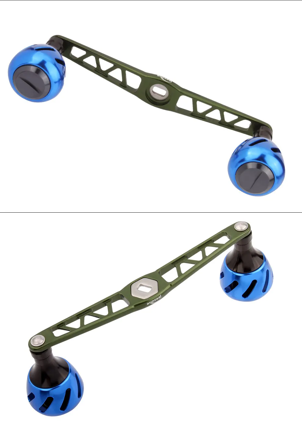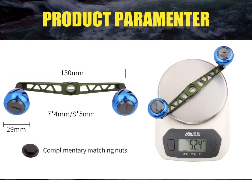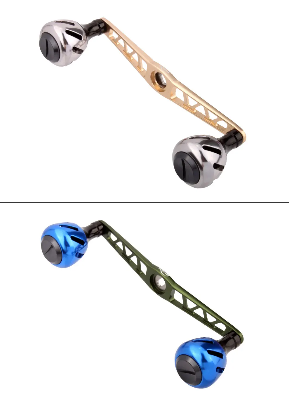 Nuevo mango de carrete de pesca Kawa, balancín de pesca, doble mango con perilla de aleación, tamaño del agujero 8*5/7*4mm, 130mm de longitud, peso 52,4G.