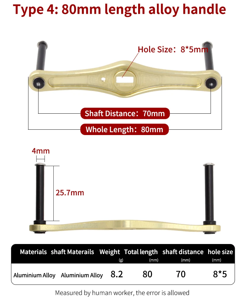 Sangre de carrete de pesca cómoda, 1 ud., mango de carrete de pesca de aleación de aluminio 7075 de alta calidad sin perilla para Baitcasting, tamaño del agujero 7*4/8*5mm