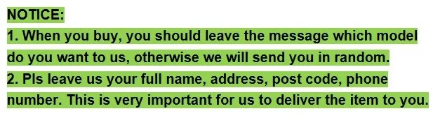 Enviamos pedidos estrictamente de acuerdo con la dirección del pedido, si hay algún cambio de dirección, infórmenos inmediatamente antes de enviarlo.