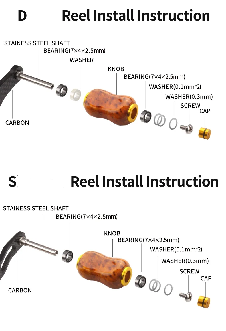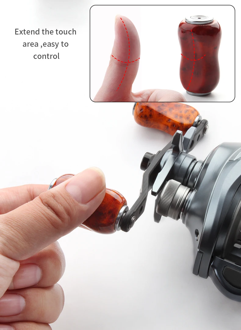 Kawa nuevo pomo de pesca de 1 pieza, para carrete S y D,Sándalo rojo/palis de hoja grande/material de palisandro de Brasil, para hilado y gota de agua, accesorio de carrete de pesca