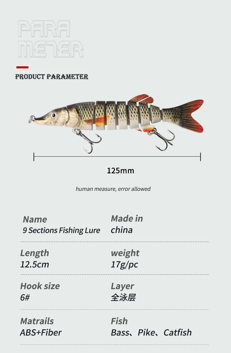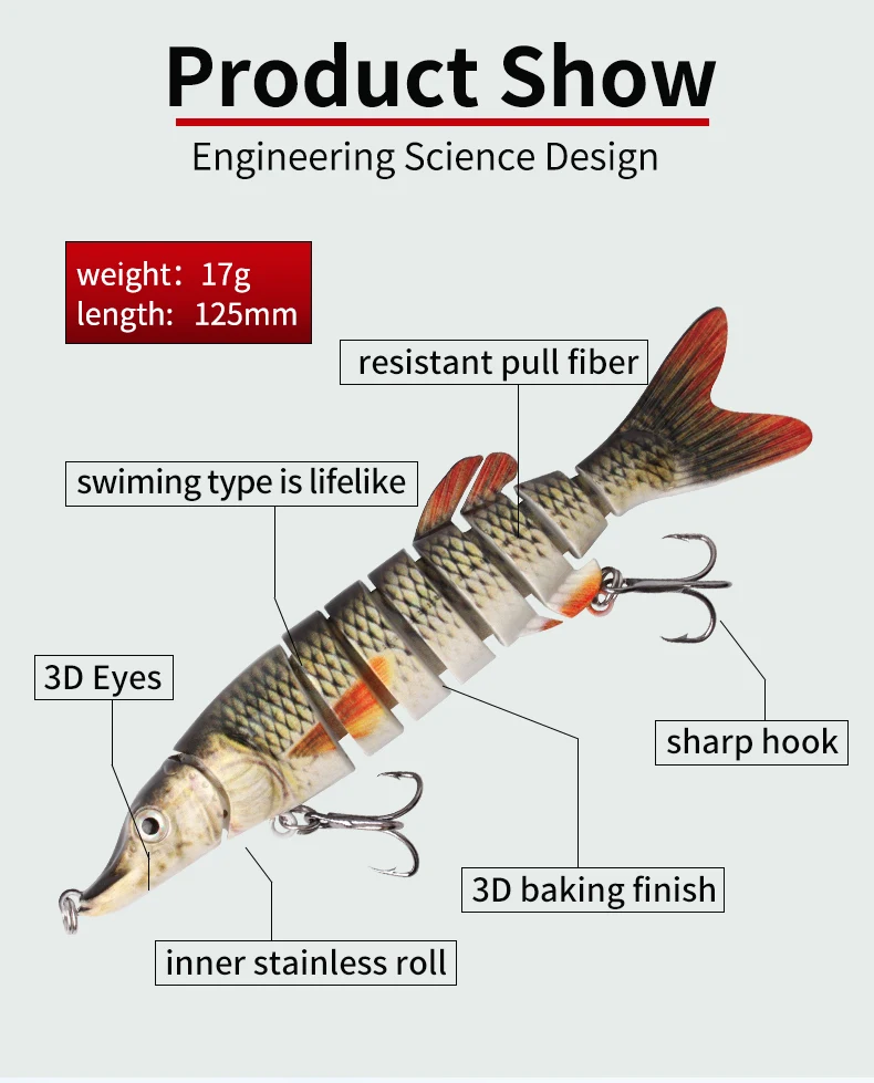 Kawa-señuelos de pesca Swimbait y cebo articulado, 12,5 cm/17g, ABS + Crankbait de fibra, pez duro realista, Lucio, bagre, 1 ud.